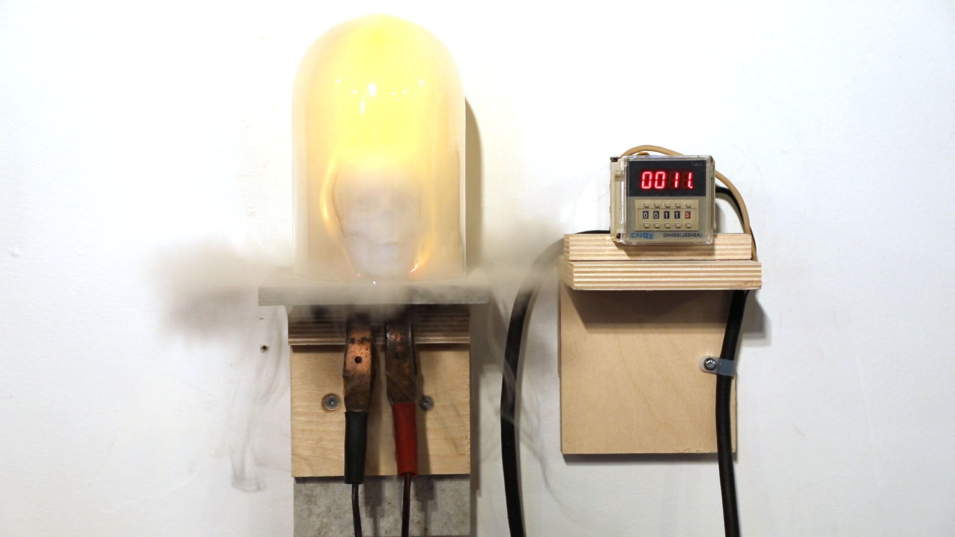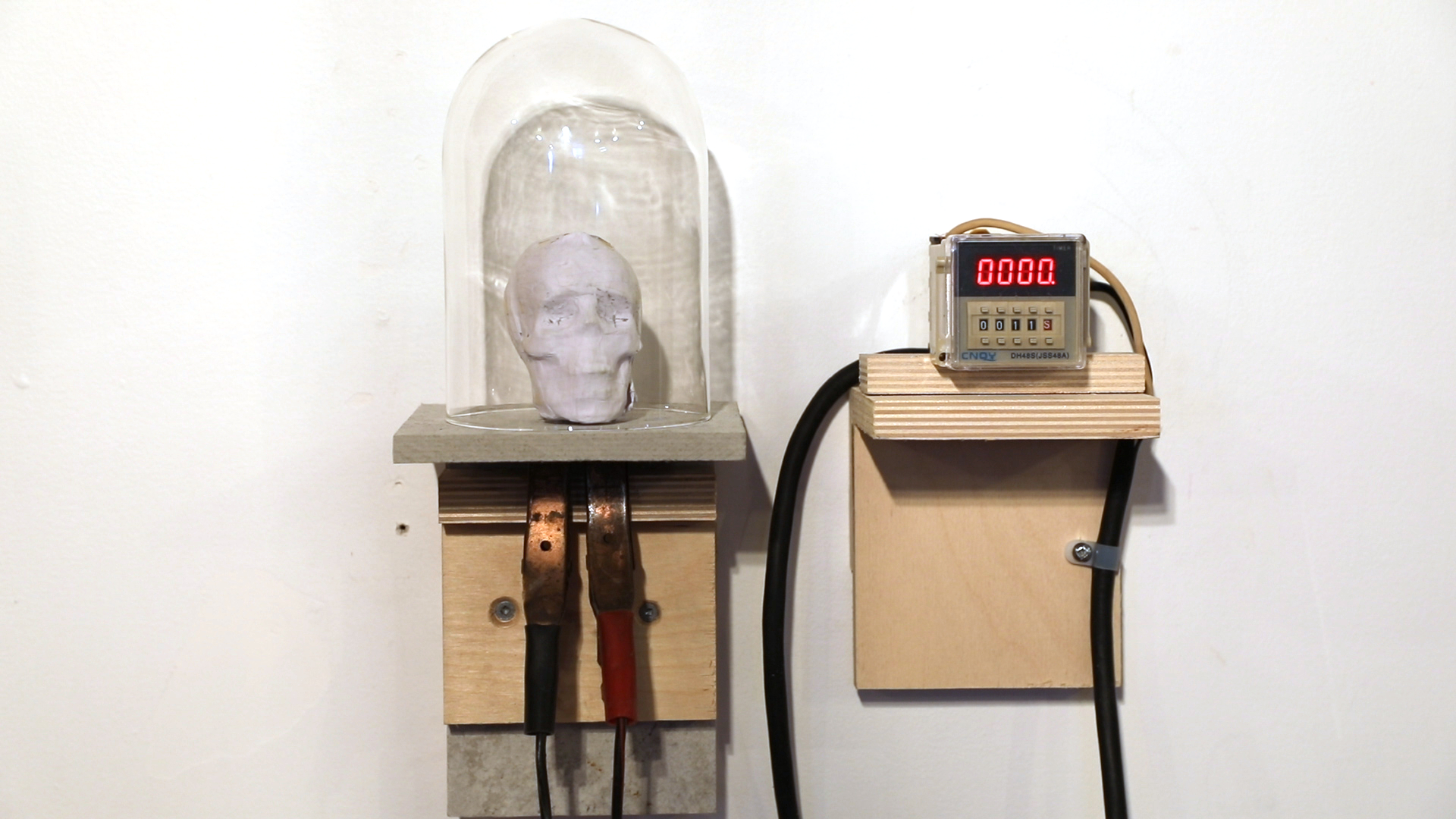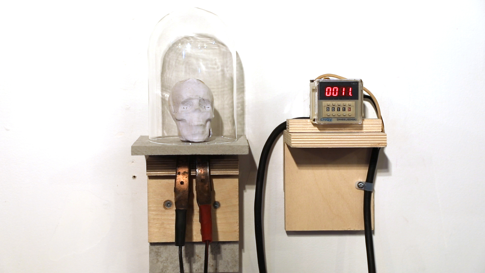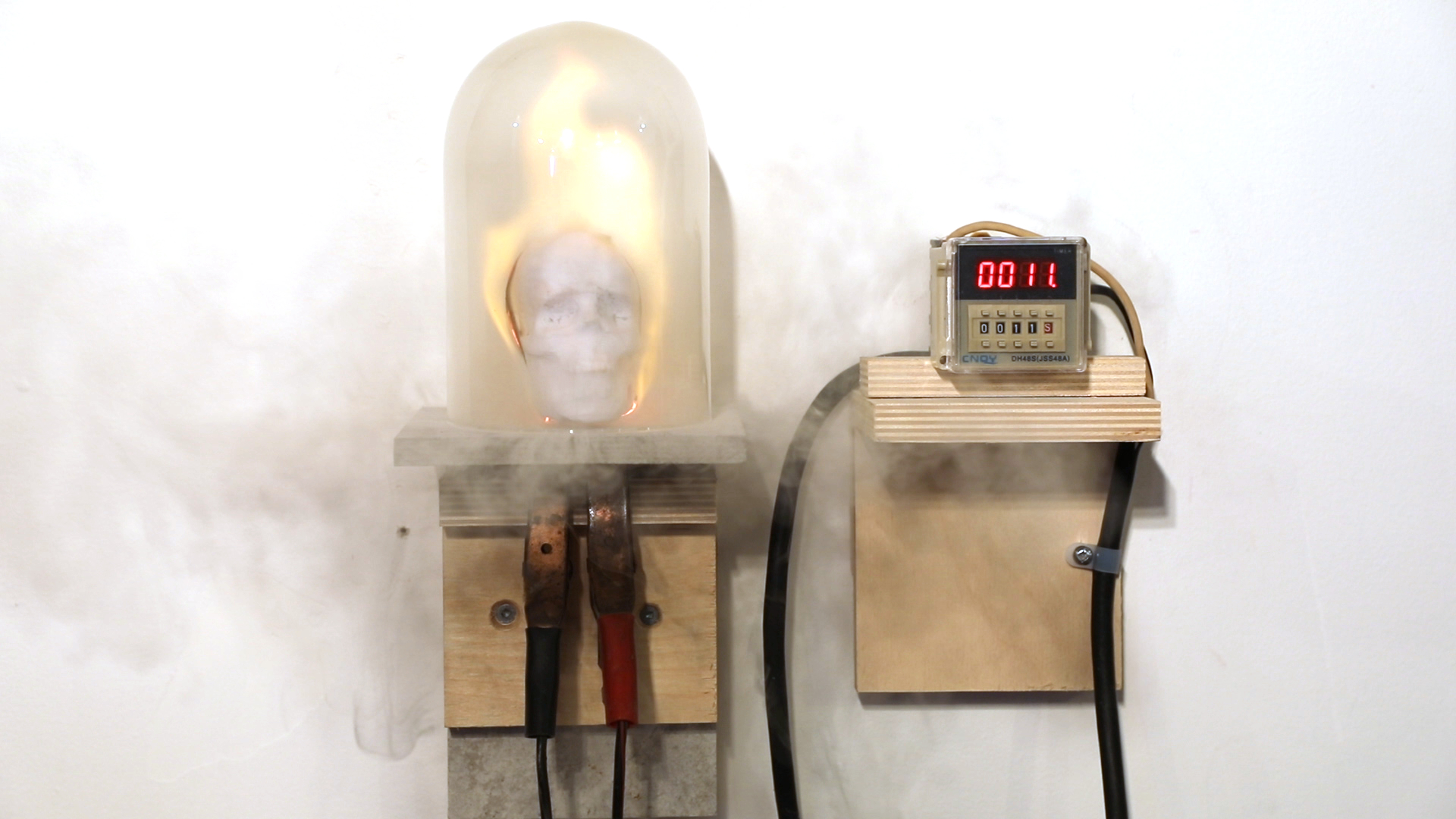 Cette sculpture propose une réflexion sur le temps qui passe, mais aussi sur la durée de la contemplation nécessaire à une œuvre d’art. Un petit crâne en papier, évoquant les natures mortes et l’éphémérité, est disposé sous une cloche de verre reliée à un chronomètre réglé sur 11 secondes. Comme le crâne de papier comporte un petit élément combustible, celui-ci s’enflamme dès que le compteur arrive à zéro. Pouvant techniquement être vu pendant cette courte période, cette sculpture devient elle aussi une photographie, comme toutes les autres sur ce site web.